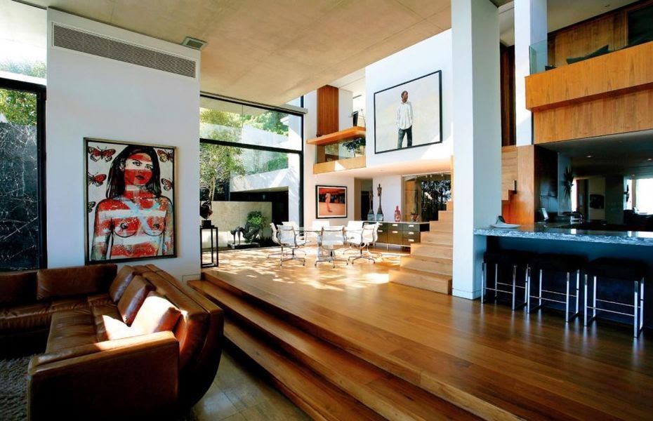 En el interior, con una mezcla de mobiliario de estilo moderno y clásico de Okha y sus grandes ventanales y elevados techos, también llegamos a esa misma sensación de libertad y amplitud que encontramos en el exterior donde se han colocado, incluso barandillas, para dar continuidad hacia el mar.